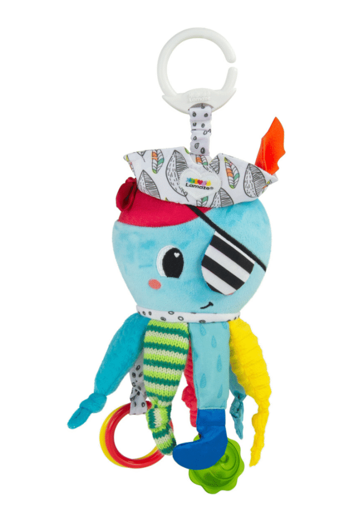 Captain Calamari is the one I recommend when a friend says “I need baby toys Lamaze that actually work on the go,” because the legs are basically eight handles.